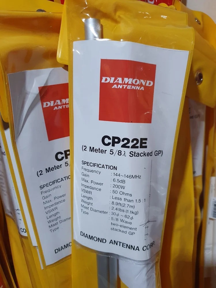 CP22E High-Gain Monoband Antenna The CP22E is a high-gain monoband antenna made from heavy-duty aluminum construction, at a price your pocket book will like! Rated at 6.5dB gain, the CP22E is an excellent performer, easy to install and would be your best value in an aluminum 2 meter antenna. Frequency 144-148 MHz Gain 6.5dB Power 200 watts Connector UHF Length 8.9' Wind Rating 70 mph Element Phasing 2-5/8l